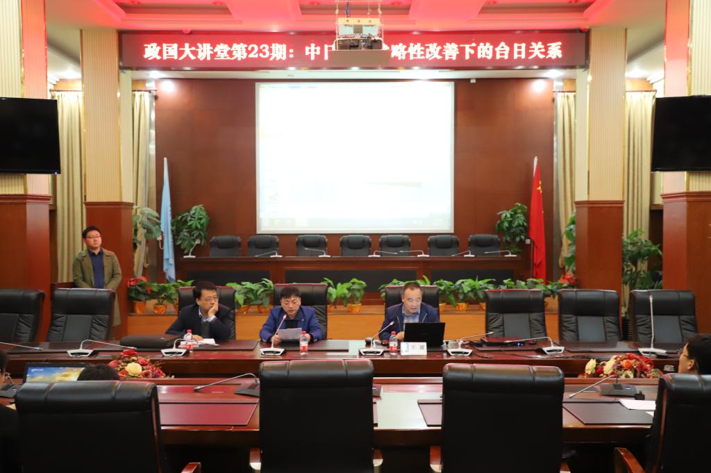 (通讯员 赖鸿、叶春霞)3月27日晚7:00,由王键教授主讲的政国大讲堂第23期——“中日关系战略性改善下的台日关系”在文华公书林4楼模拟联合国会议室举行。本次讲座由我院副院长胡宗山主持,汪滨教授及部分其他高校教师出席,我院2017级全体研究生参加了本次讲座。