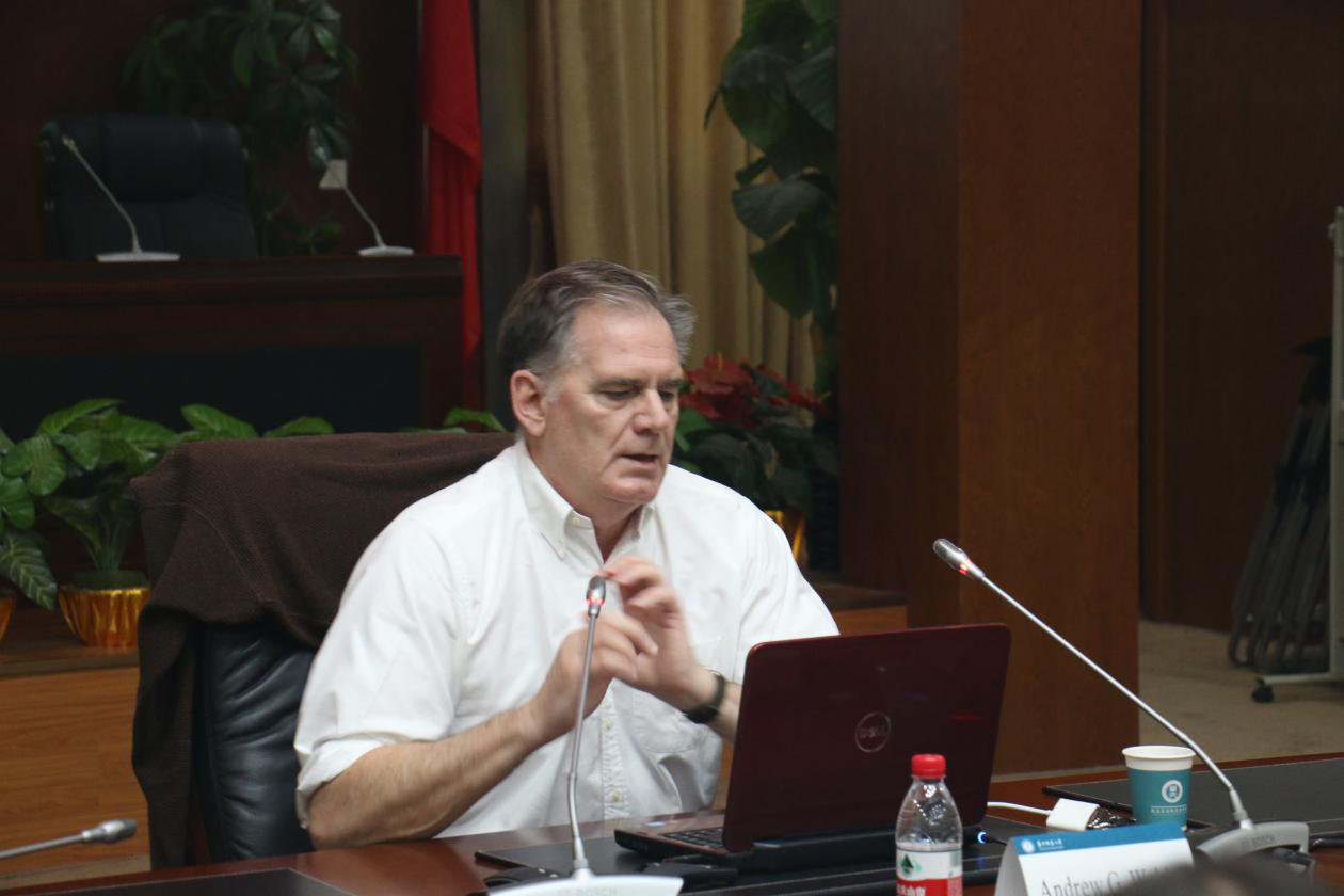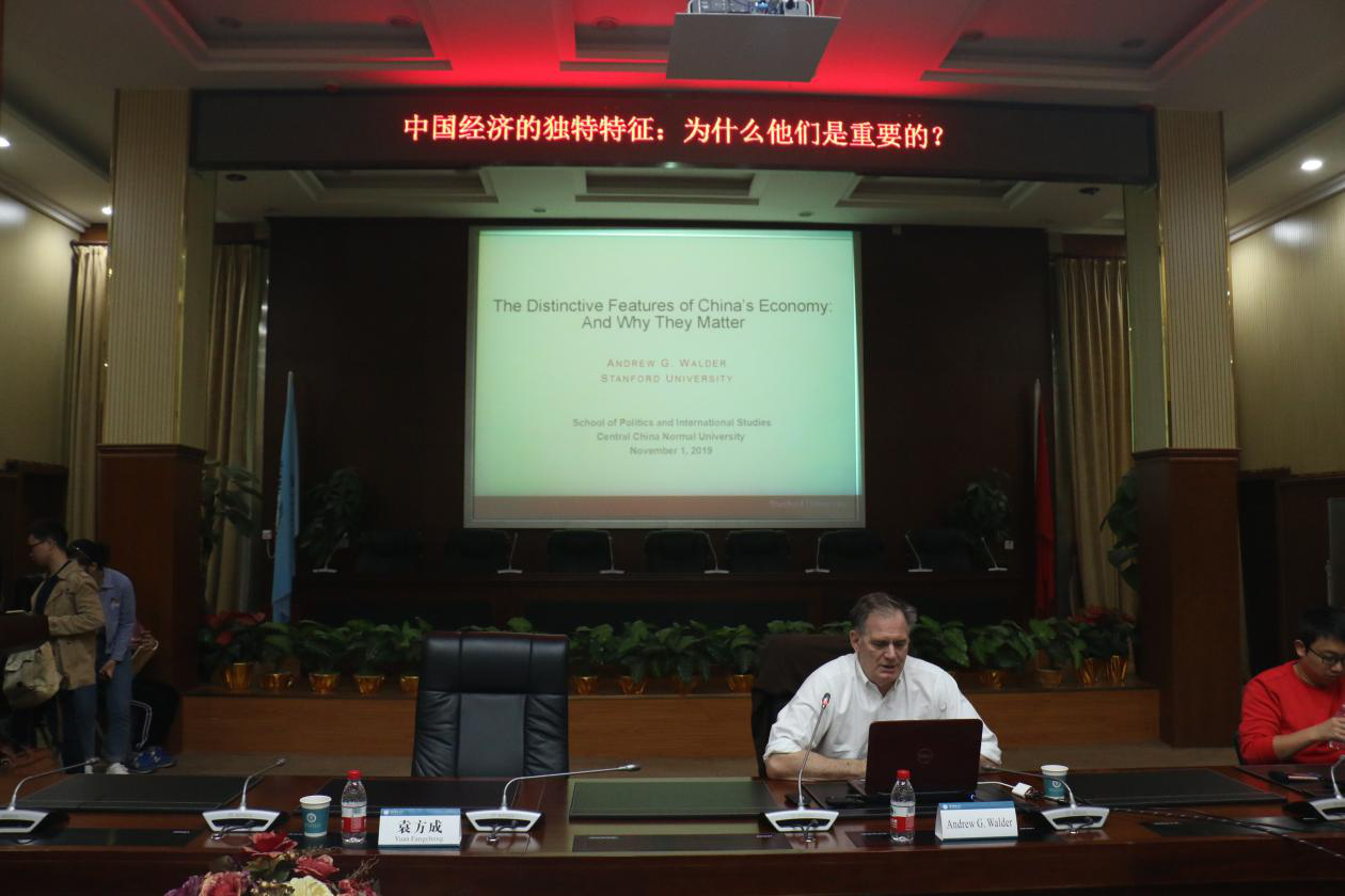 (通讯员 田嘉玉)2019年11月1日上午,“新时代的中国国家治理:进展、挑战与对策”系列讲座在文华公书林四楼模拟联合国会议室举行。美国斯坦福大学社会学系Andrew G.Walder教授为我院学子带来主题为《中国经济的独特特征:为什么他们是重要的?》的讲座。本次讲座由我院袁方成教授主持,19级科社所硕士研究生、19级政治所硕士研究生、博士研究生聆听了本次讲座。