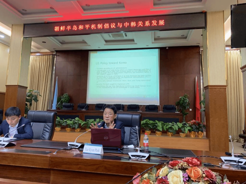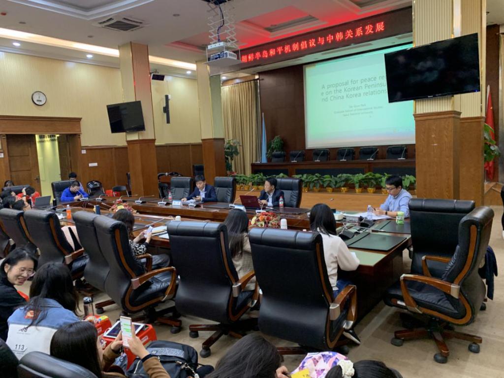 (通讯员 吴港婷)2019年11月1日晚来自韩国首尔大学的朴泰均教授莅临我院为大家带来了主题为“朝鲜半岛和平机制倡议与中韩关系发展”的讲座,此次讲座由陈菲副教授主持,我院学生聆听了此次讲座。