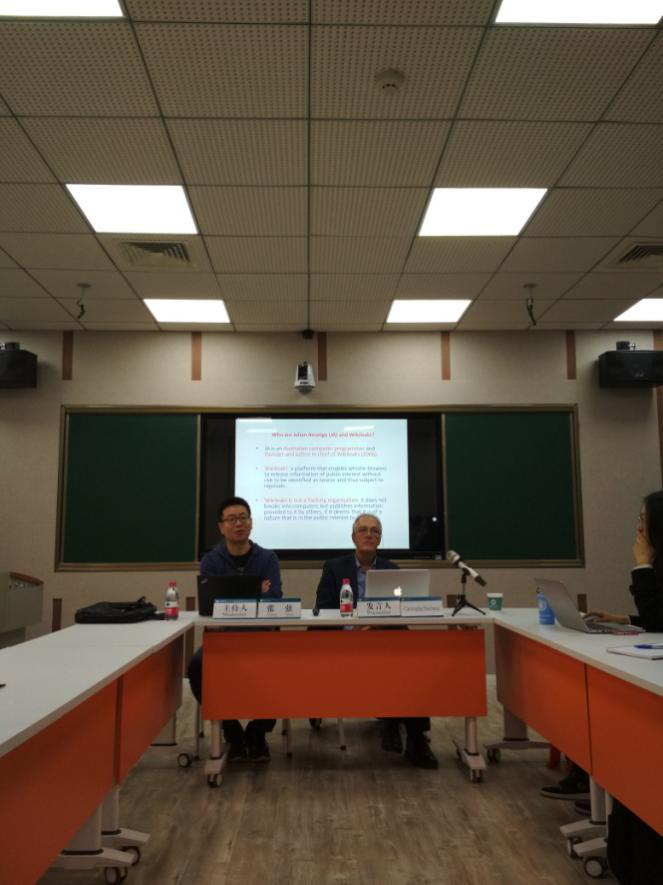 讲授完毕,Christophe Peschoux教授继续与学子们热烈互动和交流,解答同学们的困惑。他认为,尽管在世界上危害人权的行为时有发生,但很少有事件会像阿桑奇这一案例这样吸引众多关注。因为阿桑奇案例是一个标志,显示国家权力和公民的权利孰轻孰重。美国不仅仅是为了惩罚阿桑奇,更是为了警示以后的人,使他们不敢从事阿桑奇的工作。国际人权机构虽然目前的影响力受到限制,但是依然需要致力于加强人权保护相关的国际法建设,使下一代人不会惧怕成为另一个阿桑奇,维护公民了解政府信息的合法权利。在讨论过程中,同学们对于本场讲座主题有了更加深入的理解。