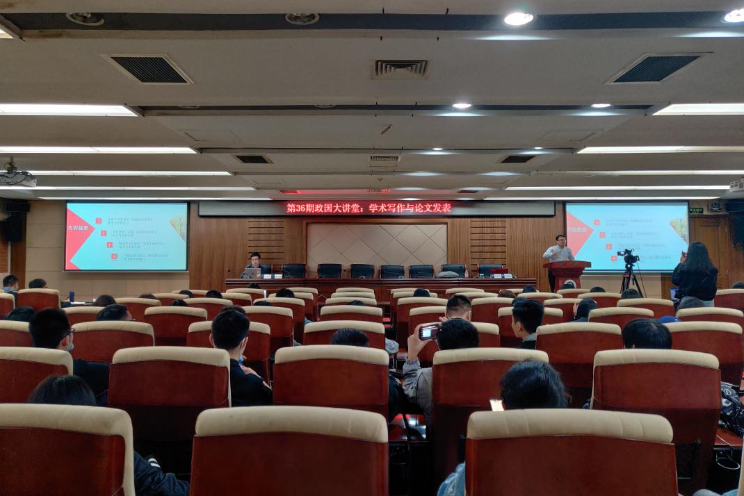 (通讯员 戴程娟)2020年10月17日晚,由广西师范大学苏曦凌教授主讲的“学术写作与论文发表”讲座在逸夫国际会议中心一楼报告厅举行。本次讲座由我院袁方成教授主持,2019级全体研究生参加了本次讲座。