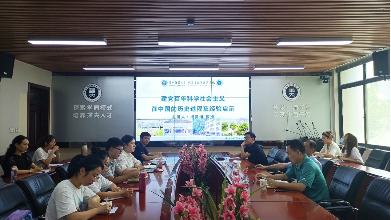 (通讯员:陈金轲)2021年7月10日下午,高原论坛·政国大讲堂第四十五期在政治与国际关系学院313会议室举办。江西师范大学马克思主义学院祝黄河教授为政国学子带来题为“建党百年科学社会主义在中国的历史进程及经验启示”的讲座。本次讲座由我院余维海教授主持,科社所全体硕士、博士研究生参加。