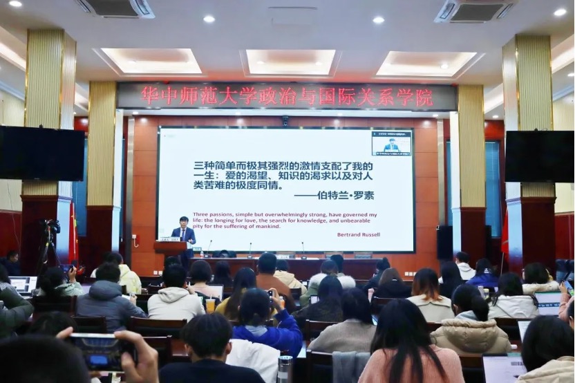 经过包刚升教授两个小时孜孜不倦的讲解后,讲座已接近尾声。包教授表达了对华中师范大学政治与国际关系学院以及观看讲座的学子的感谢,收获了在场同学热烈的掌声。他以罗素的名句作结“三种简单而极其强烈的激情支配了我的一生:爱的渴望、知识的渴求以及对人类苦难的极度同情”,将此名言送给在场以及线上观看的学生。同时,他表达了对政治学学生的殷切期盼,希望当代政治学学生能饱含激情地投入政治学研究之中,发展学术,建设祖国。