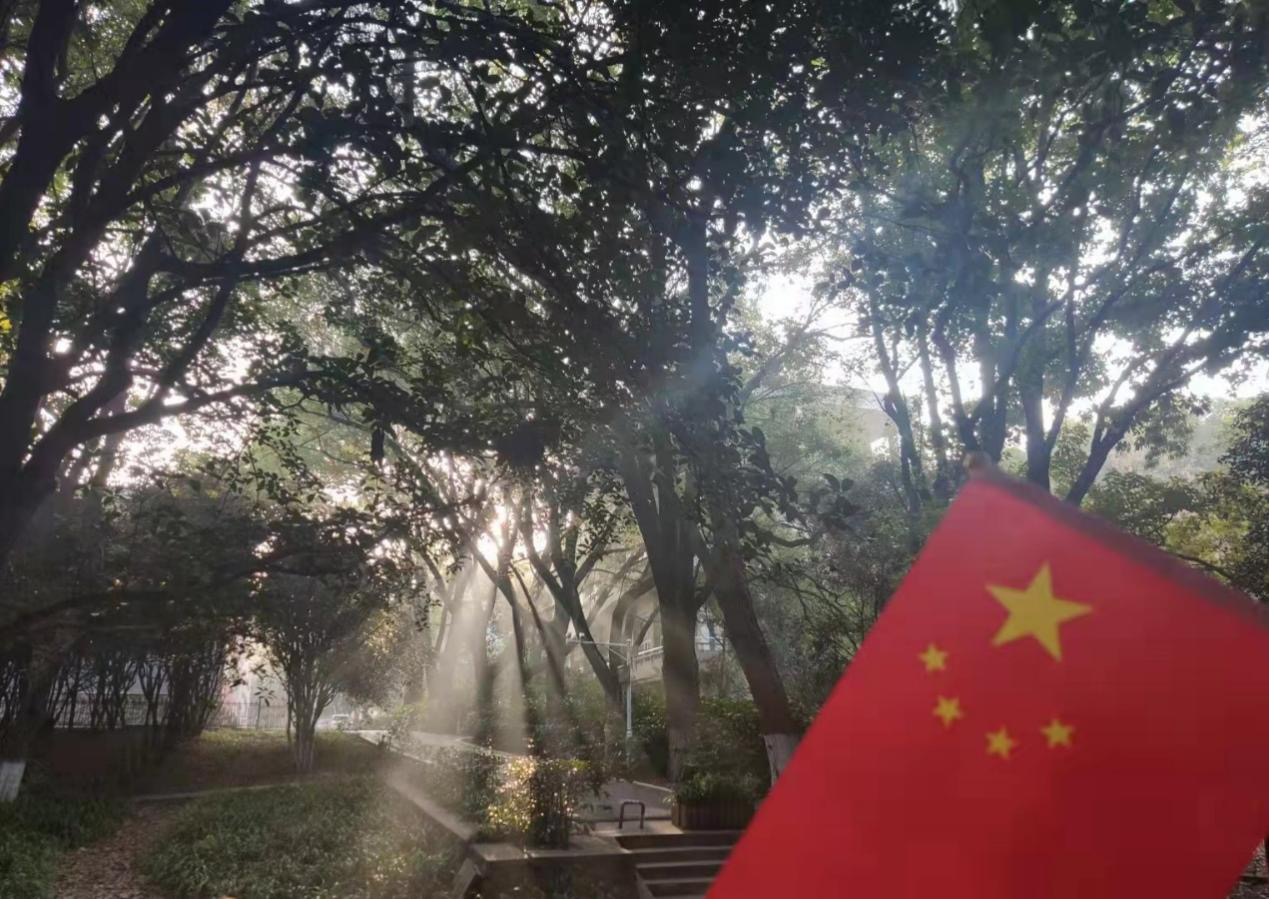 10月1日清晨,伴随着冉冉升起的旭日,国际政治系研究生第一党支部齐聚文华公书林前,参加国庆升旗仪式,一同庆祝中华人民共和国72岁生日,庆祝中国共产党成立100周年。迎着朝阳,国旗班队员身着军装意气风发、肃穆出旗,充分展现了华师学子良好的精神风貌。在高昂的国歌声中,五星红旗冉冉升起,在场的每一名同学怀着对祖国的无限热爱,以最饱满的热情行注目礼、共唱国歌。