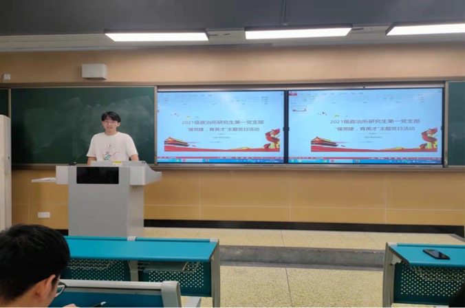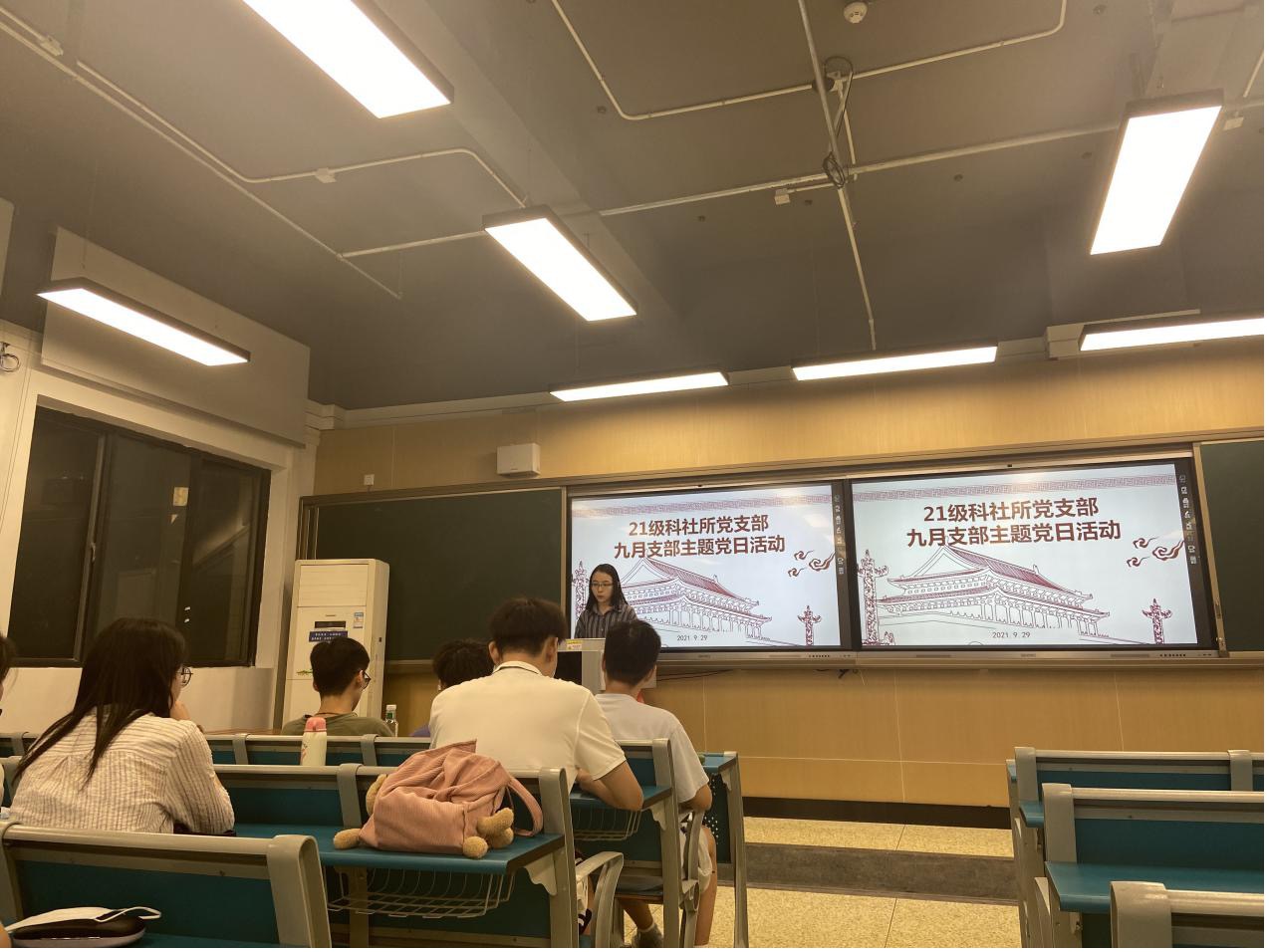 为深入学习贯彻第二十七次全国高校党的建设工作会议精神、习总书记给全国高校黄大年式教师团队代表重要回信精神和在庆祝中国共产党成立100周年大会上的重要讲话精神,准确把握高校党建工作面临的新形势新任务新要求,全面贯彻新时代党的教育方针,9月29日晚上,政治与国际关系学院2021级科社所第一党支部于八号楼313教室召开九月份支部主题党日活动。本次活动由支部书记徐丝斯同志主持,支部全体党员、预备党员参加。