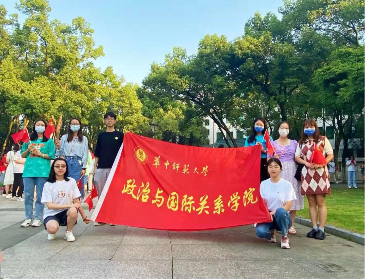 国际政治系研究生第一党支部齐聚文华公书林前,参加国庆升旗仪式,一同庆祝中华人民共和国72岁生日,庆祝中国共产党成立100周年。