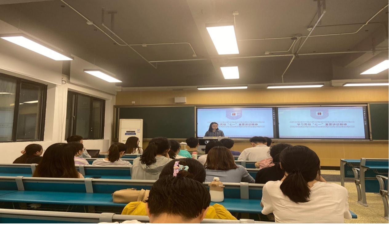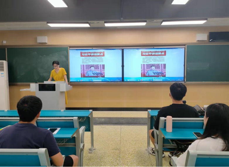 导入环节过后,金杰同志立足实际,带领大家以图解的方式学习了习近平总书记“七一讲话”主要内容,从讲话要点、对党员同志的号召、对青年人的要求三个方面展开认真剖析与解读“七一”重要讲话精神,与研究生学习任务及党员责任使命紧密结合。党员同志们认真观看,收获颇丰。