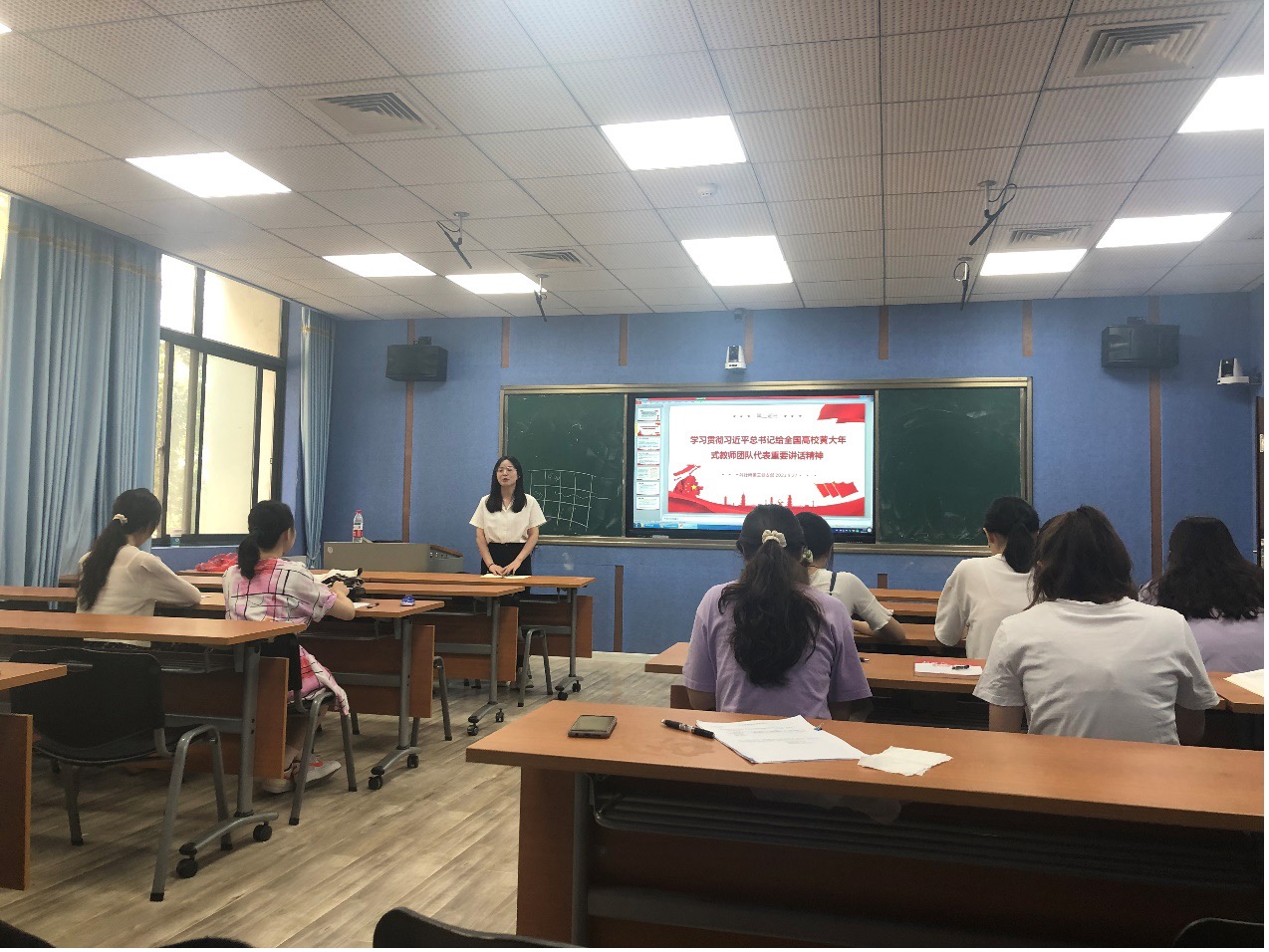 此次会议主要分为两个主要部分,首先,周昕韡同志为参会同志们介绍了8月17日在京召开的第二十七次次全国高校党的建设工作会议,并介绍、解释了中共中央政治局常委、中央书记处书记王沪宁会议上的讲话。王沪宁表示,要深入学习贯彻习近平总书记“七一”重要讲话精神和关于加强高校党建工作的重要论述,贯彻落实《中国共产党普通高等学校基层组织工作条例》,紧扣立德树人根本任务,扎实推进高校党的建设和思想政治工作,努力培养德智体美劳全面发展的社会主义建设者和接班人。