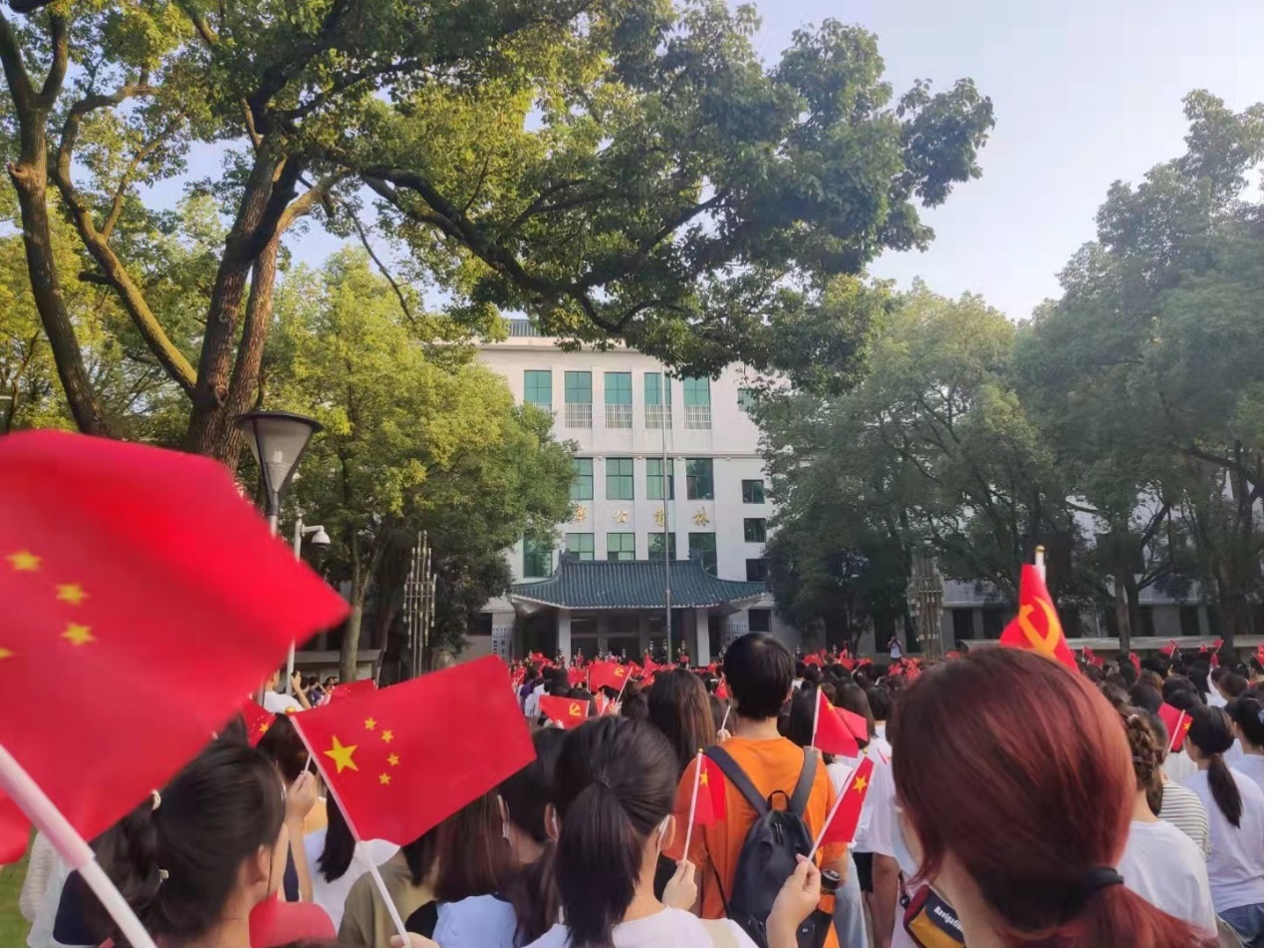 在升旗仪式结束后,王甜甜同志发表感想:“青年党员既是社会的驱动力量,又是我党发展的新鲜血液,承载着更多的社会责任和政治责任。牢记党的使命,争做时代新人是对青年党员的欣赏和激励。我和其他党员一起共同参与了华中师范大学国庆特别升国旗仪式,师生齐聚一堂,共同庆祝国庆佳节。听党话,跟党走,对于我们青年党员来说,不应该只是一场空话套话,更应该转化为实际行动。”