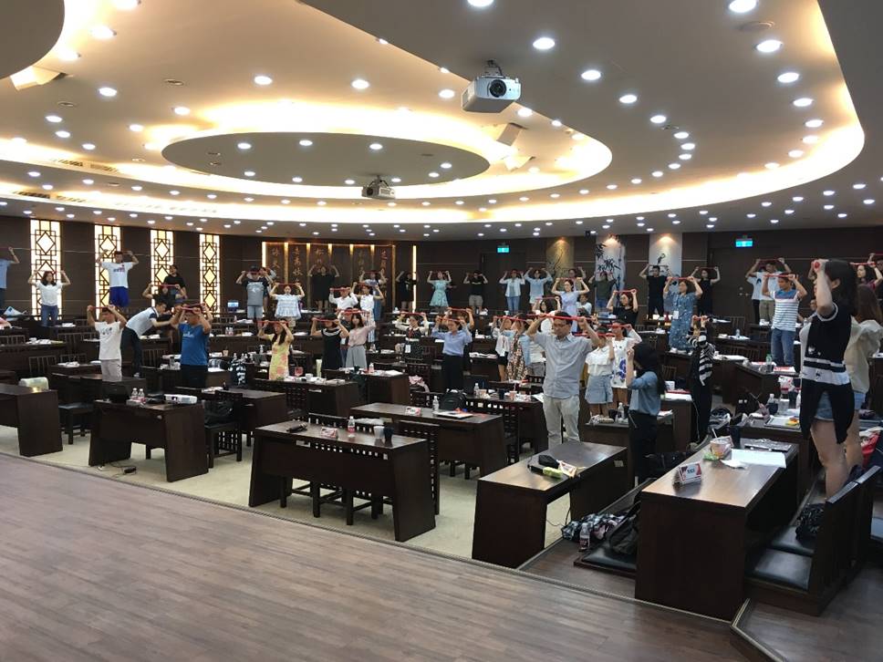 下午,台湾国防大学通识教育中心副教授郭世清老师为大家带来了“达摩易经棍·养生兼回春”课程。郭世清教授在带领大家一起学习达摩易经棍法前,专门跟同学们强调了身体健康的重要性,他认为“昨天的我很聪明,想要改变世界;明天的我更智慧,正要改变自己。改变自己要从参与锻炼、强身健体开始”。随后,同学们就跟随郭教授一起站起身完成了一整套四式达摩易经棍法。