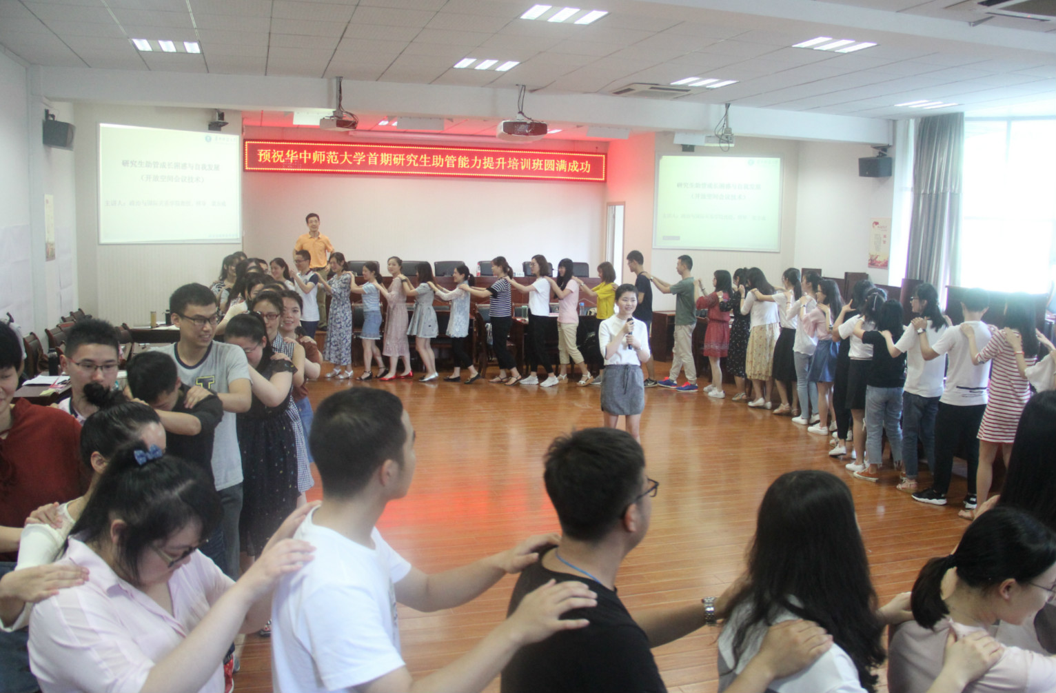 在袁教授简单的自我介绍之后,课程正式展开。“这节课我将与各位研究生助管一起进行参与式需求调查,把严肃事情轻松做”。首先,通过“报数”游戏将学员们分为12个小组,各小组成员通过“姓名大串联”、“相互捶背”以及“荷花朵朵开”三种游戏,在短时间内完成从完全陌生状态到相互熟悉状态的转化。热身阶段结束后,袁教授鼓励大家分享助管工作中的酸甜苦辣。来自历史文化学院的关勇同学说:“我是一名兼职辅导员,刚工作的时候我经常犯错误,经常被老师批评,我想了一个办法,随身带着本子记下自己的错误并逐步改正,现在犯的错误越来越少,很开心得到了院长还有老师的表扬。”来自音乐学院的尚晓丹同学分享道:“这一年多的时间里,不管学习、与人处事还是工作方面我都收获很多,特别是人际交往能力、处理公文能力,我会好好定位,更好的为大家服务。”