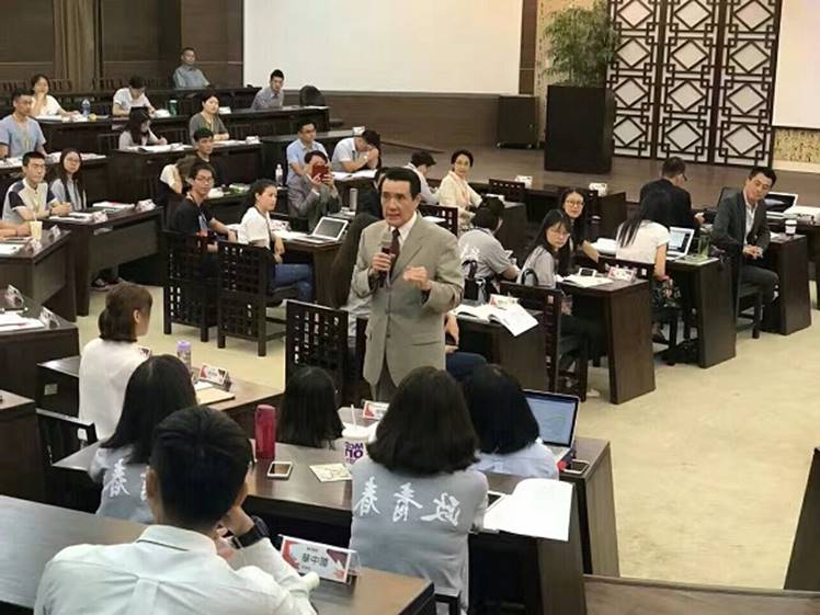 首先,东吴大学严家淦法学讲座教授、哈佛大学博士、台湾地区前领导人马英九先生致开幕词并发表题为“两岸关系发展与愿景”的主题演讲。在演讲中,马英九先生回顾了自己担任台湾地区领导人期间两岸交流的成绩,重点解读了“九二共识”的来由及发展,再次声明了自己坚持“九二共识”的态度。他指出,两岸同为中华民族、同根同源,应该齐心协力为两岸经贸发展努力,并奉劝台湾当局不要再误判形势,以免错失良机。在互动环节,他表示欢迎大陆学生到台交流,也鼓励台湾学生到大陆学习。最后,马英九先生热情与全体营员合影留念,并在欢送声中离开现场。