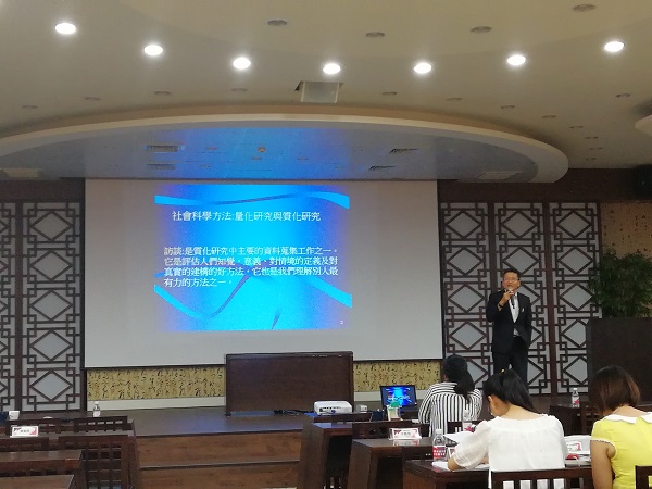 其次,淡江大学中国大陆研究所张五岳教授讲解了《深入访谈技巧》。张教授在看问题时善于抓住本质。他首先介绍了深入访谈的概念,让我们明白在深入访谈中,应抓住问题的关键点;然后从心理因素、社会因素等方面指导我们问出想要的答案,最后将我们的访谈记录,在记录之间建立关系。张老师严肃又不失幽默地告诉我们:应坚守学者底线,但要有技巧。满满一堂课,全场笑声满满,又充满思辨。