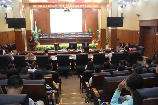 首先,全体起立,奏唱国歌。嘹亮的歌声后,主持人宣布大会正式开始。会上,政治与国际关系学院第一届学生会主席李一凡同学作2016-2017学年度学生工作总结报告。紧接,冯老师发表重要讲话。讲话中,冯老师肯定了2016届学生会取得的优异成绩,对上一届学生会干部积极努力、吃苦耐劳的精神与工作态度提出了表扬。同时,也指出了他们工作中的不足,并表达了对2017届学生会工作的期待。之后,政治与国际关系学院第一届团委学生会副书记郑伊翔同学宣读竞聘办法,以及总监票人、监票人、总计票人、计票人名单。本次大会共有19位候选人,他们通过各自精彩的演讲,向大家展示了对学生会工作的热爱和为同学们服务的决心。同学们认真聆听,并本着公平公正的原则,在认真思考后,投出了手中宝贵的一票。在大家共同见证下,监票人打开计票箱,现场唱票,从中选出得票数最多的12名同学,组成新一届学生干部团体。最后,由孙延松老师为上届学生干部颁发聘书,至此,大会圆满结束。