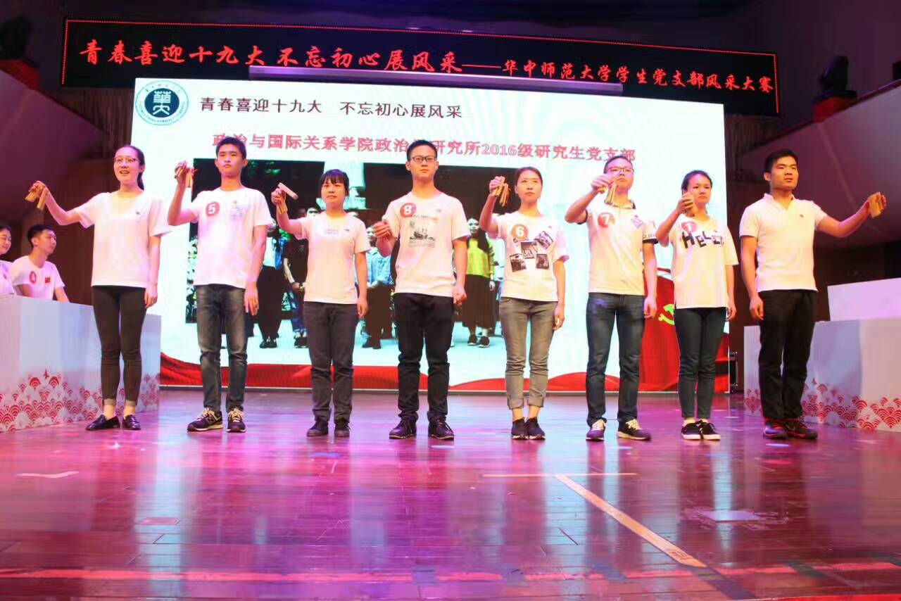 6月5日下午2点30分,由中共华中师范大学委员会主办、文学院党委承办的“青春喜迎十九大,不忘初心展风采”——华中师范大学党支部风采大赛决赛在我校音乐厅举办,我院政治学研究所2016级硕士生党支部参加决赛。
