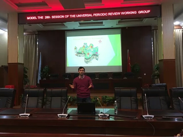 (通讯员 郭志奔)12月5日晚,由共青团华中师范大学政治与国际关系学院委员会主办、华中师范大学桂子山国际问题研究会承办的“模拟联合国人权理事会第28届普遍定期审议工作组会议”(Model The 28th Session of The Universal Periodic Review Working Group),在模拟联合国会议室(老图书馆四楼)成功举行。