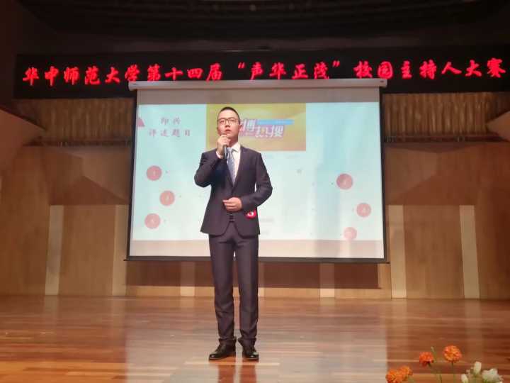 (通讯员董诗艺)4月21日晚,“华中师范大学第十四届校园主持人大赛”决赛在音乐厅隆重举行。我院17级学生高峰作为入围决赛的选手,最终摘得“声华正茂主持人大赛决赛”桂冠。