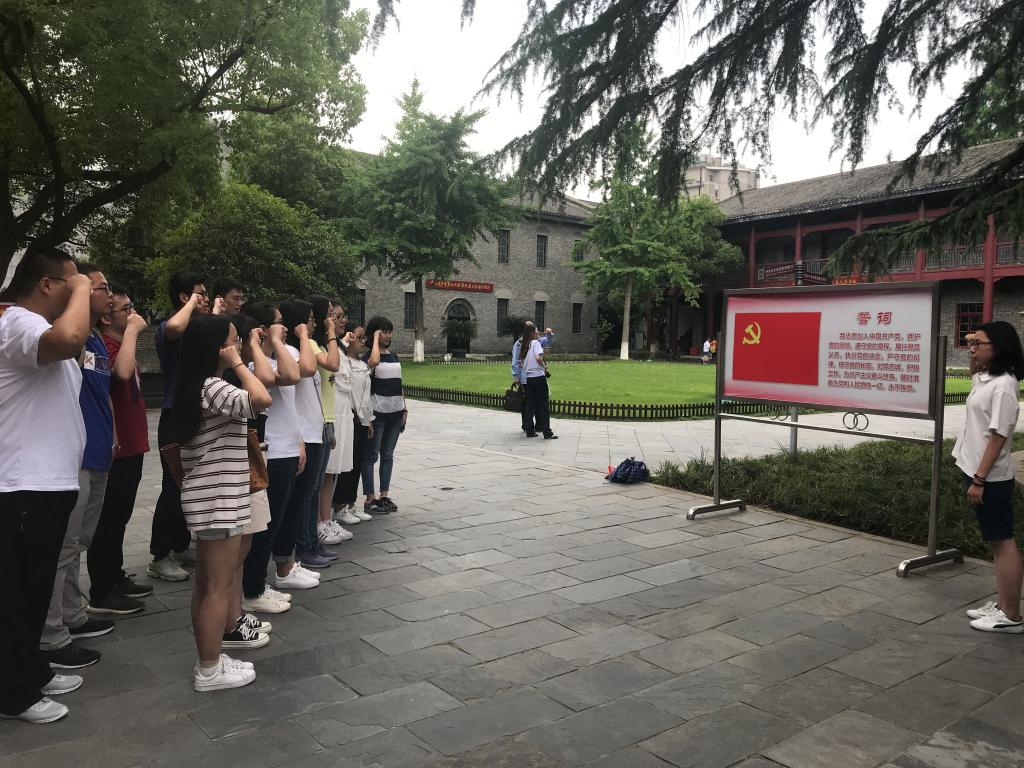接着,全体入党积极分子依次参观了陈列馆中“高潮与危机”、“贡献与局限”、“应变与转折”三大展区。陈列馆再现了1927年大革命失败前后的历史,成员们从中深切感受到早年中国共产党探索中国革命道路的艰难历程。参观结束后,在党支部副书记徐丝斯同志的带领下,全体入党积极分子进行了了入党宣誓仪式。活动在全体成员合影留念后圆满结束。