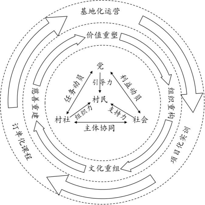 共同缔造的核心在共同,基础在社区,关键在群众参与。其所承载的社区属性框定了乡村人才振兴的基础单元,而基础单元决定培育方式与培育主体。随着国家政权建设进程的不断加快,村干部在提升向上回应能力的同时其自身的组织和动员村民的意愿与能力却在逐步消解。因此组织体系的建立不仅是以组织化、制度化的方式提升以农民为主体的本土人才自身综合能力的需要,还是以引领基层、服务乡村为导向濡化村社干部进而培养治理型人才的原因所系。而作为中介的村社组织既能够通过嵌入纵向的组织序列和类科层化的任务架构获取人才培养所需的政策资源,又能依靠情感动员和利益动员实现向内动员本地村民的目标,同时跳脱出村社权威的正式身份,凭借私人化的社会网络有效链接和整合市场和社会资源,进而以选择性的激励、稳定的制度供给和可行的组织承诺促进更多村民参与乡村振兴的共同行动。