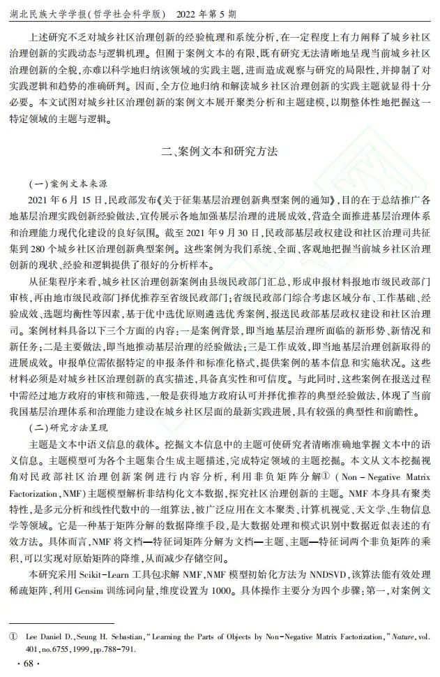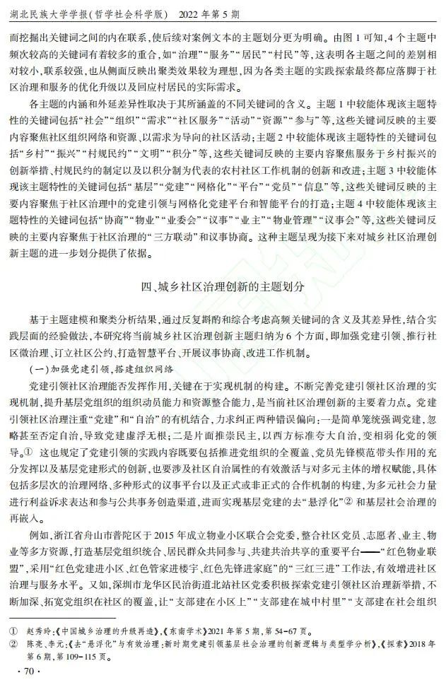 《城乡社区治理创新的主题划分与实践机理——基于280个案例文本的主题建模分析》