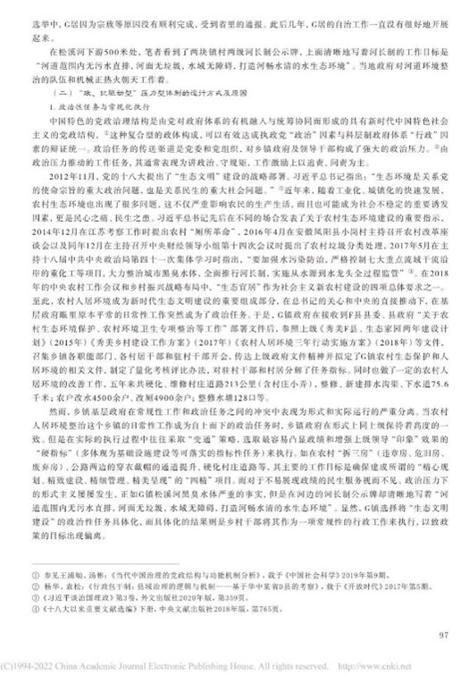 然而,该理论解释视角也有其特定的时空背景和场域要求。有学者发现,同样的地方,与21世纪前十年相比,政治运行体制虽然也是压力型的,但其作用机制和运作逻辑均发生了异变,特别是进入新时代后,时代背景和发展目标的重新设置,松动了压力型体制的社会土壤和制度基础,这使得这一概念逐渐显现出分析的局限性和解释力不足的情形,导致其作用机制和运行逻辑发生变化。