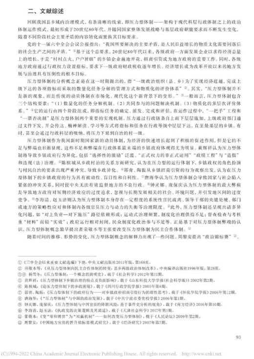 压力型体制这一分析概念作为反映我国以政治动员和行政命令为主要特征的政治体制运作模式,自1998年由荣敬本等人提出,迅速获得经济学、政治学、社会学等诸多领域学者的接受和应用,在当代中国地方政府运作的系统分析中具有极强的解释力与合理性。